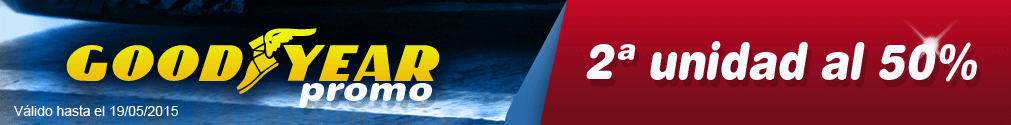 En Confortauto tenemos una nueva promoción en neumáticos de la marca Goodyear. Estará en vigor hasta el próximo 19 de Mayo de 2015. Gracias a esta promoción, puedes comprar 4 neumáticos por el precio de 3 de la marca Goodyear o si sólo necesitas 2 neumáticos, el segundo se queda al 50% de su precio.